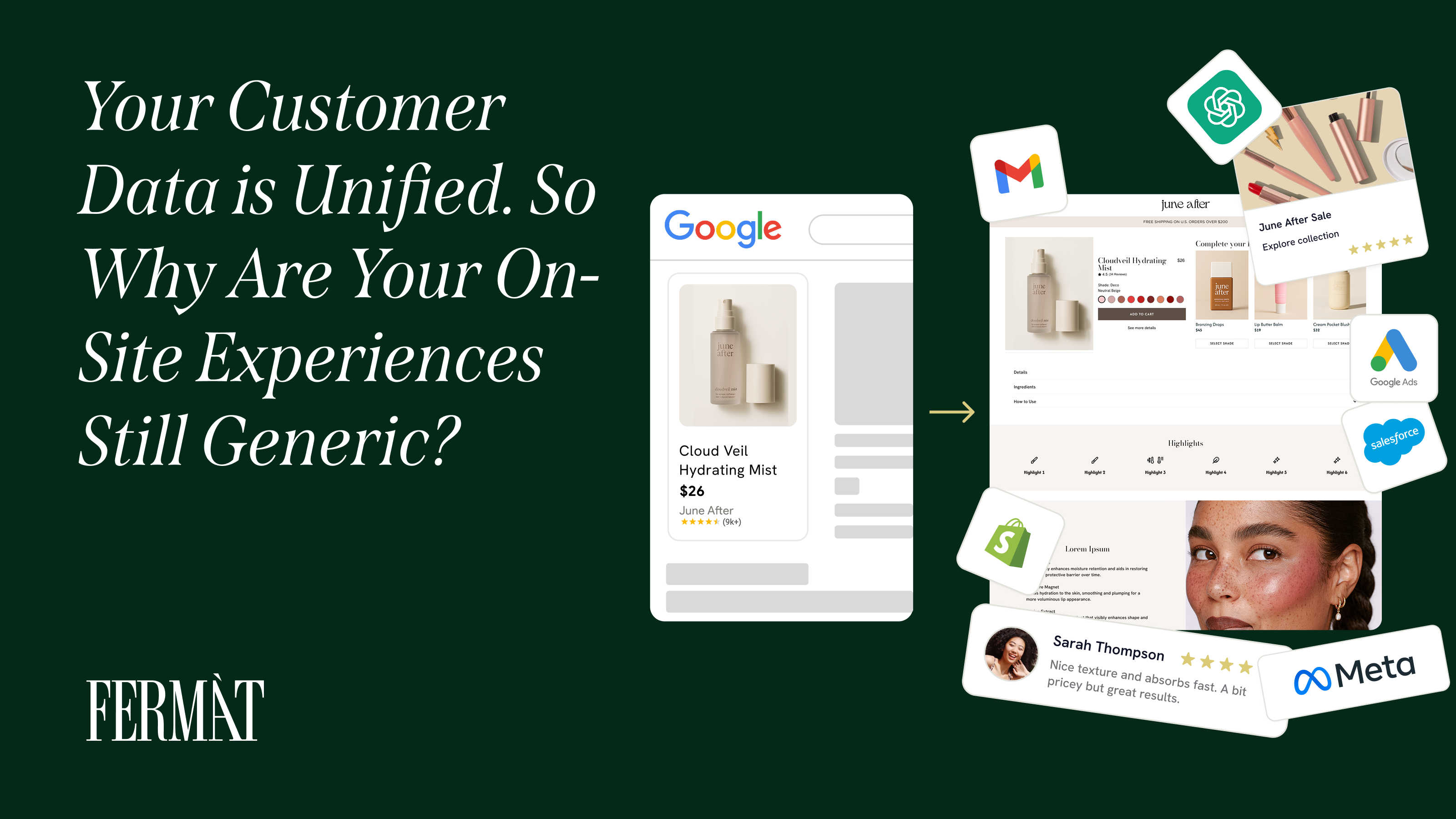 FERMÀT enables brands to close the gap between unified customer data and dynamic on-site experiences by empowering marketers to create, test, and optimize SKU-level product funnels without developer dependencies. Instead of sending all your traffic to the same static product page, FERMÀT lets you build feed-driven, personalized experiences that adapt to who's visiting, turning your unified customer intelligence into actual conversion lift.